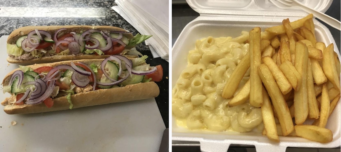 Delish offers a wide variety of takeaway options including fish and chips, sandwiches, baked potatoes, and a selection of hot drinks. Their menu is perfect for anyone craving a quick bite.